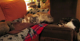 Right, best get organised, hoover up rabbit poo and food, pick up Basil's hairball (again-Persians are so troubled by them), hoover downstairs of cat hair (moulting says something about the central heating situation methinks)and shut Basil, Jacob and Humphrey into my bedroom again for health and safety reasons. Poor Basil hates strangers more than I do, and my anxiety is increased by Basil's genuine terror when strangers are in the house. To have to go through this again, and possibly again if new taps are needed upsets me and also makes me cross. I'm very protective of my guys-they're my children after all.